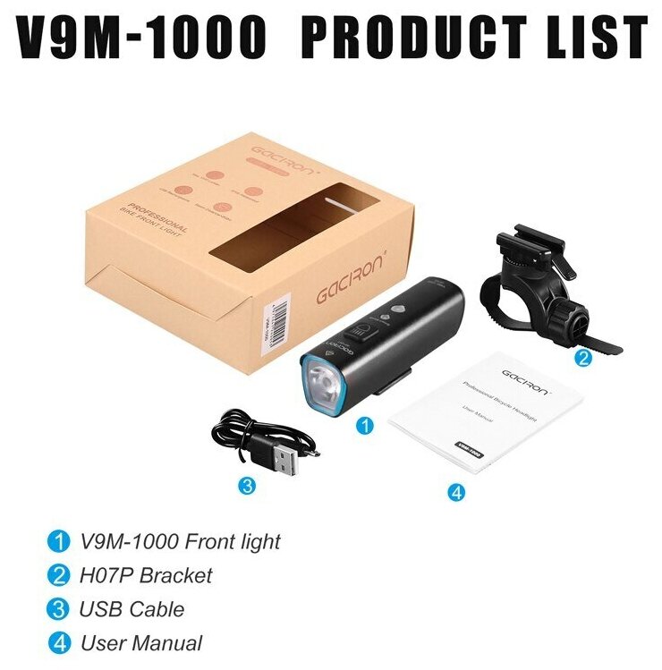 Фонарь/ Велофара для велосипеда Gaciron V9M1000 аккумуляторный 1000 люмен