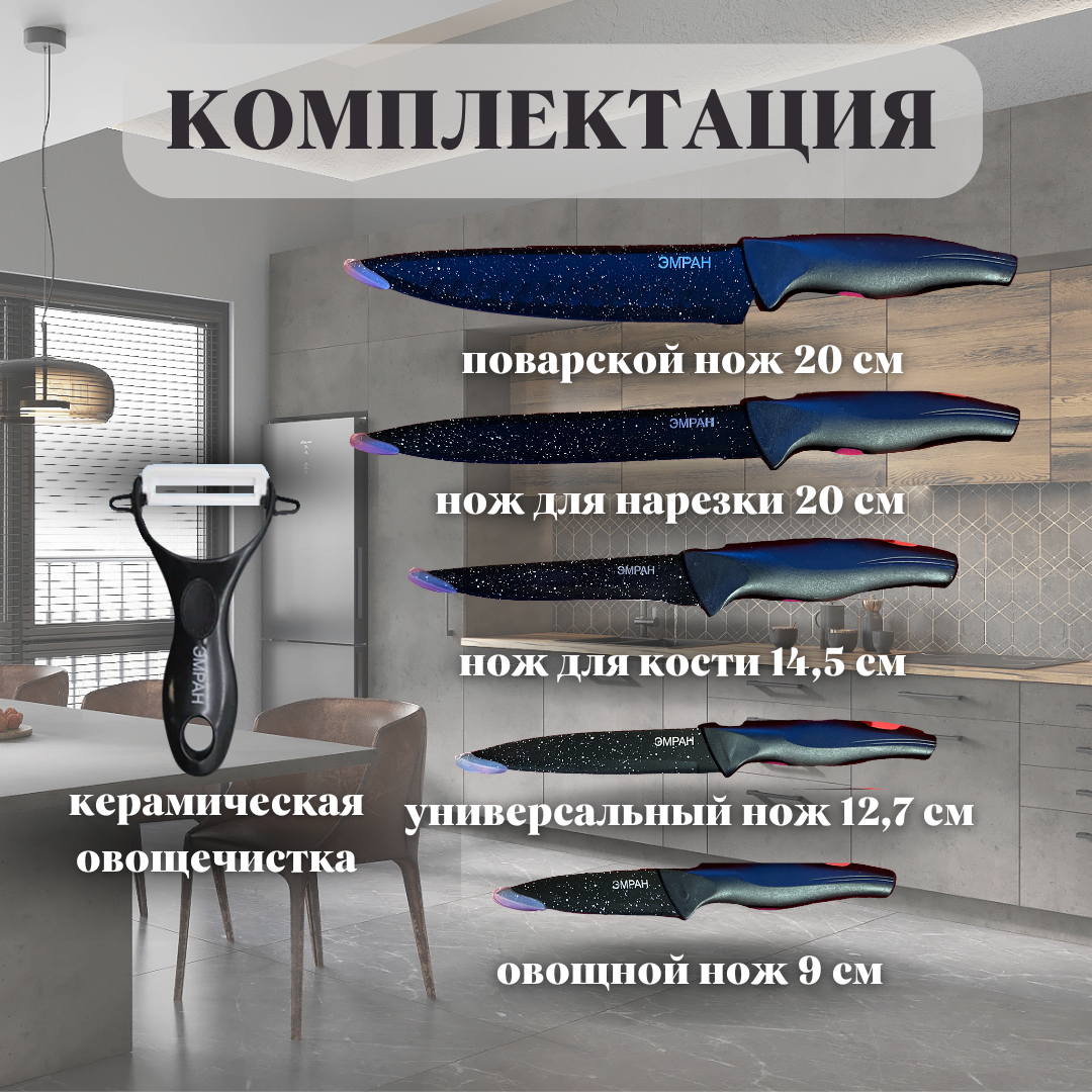 Набор кухонных ножей эмран с антибактериальным покрытием / Набор из 6 предметов интересное:
