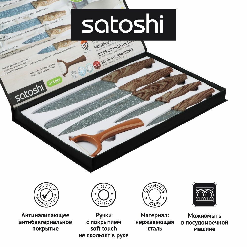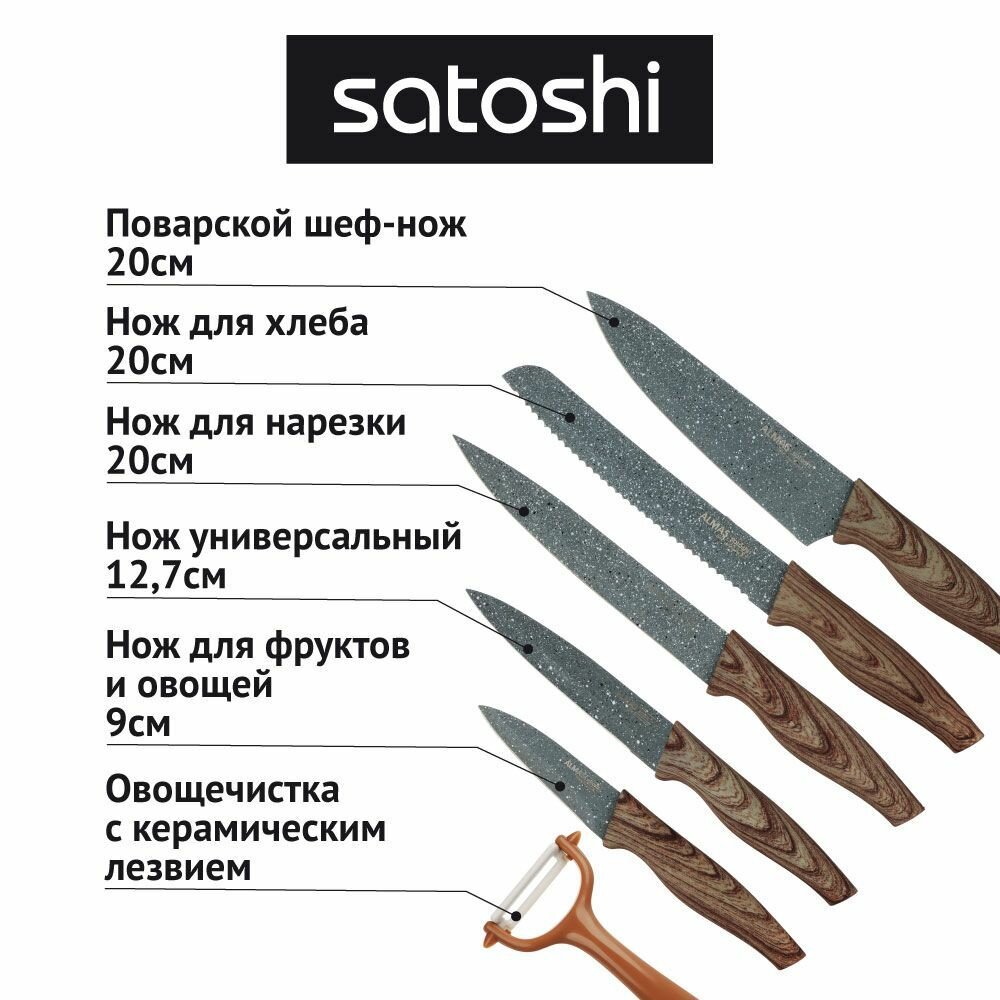 Набор Satoshi Kitchenware Алмаз, 5 ножей и овощечистка