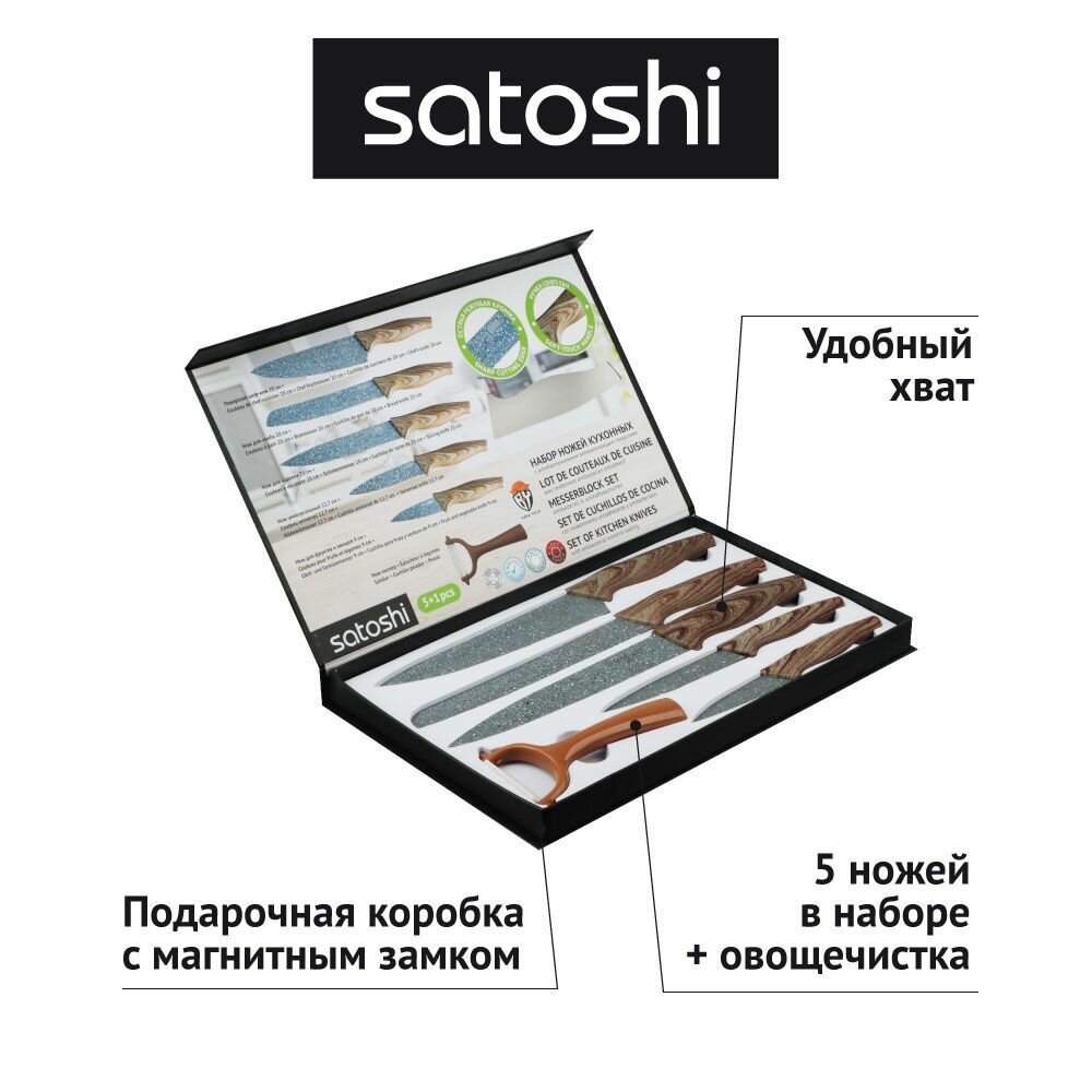 SATOSHI Алмаз Набор ножей кухонных 6пр, в магнитной коробке