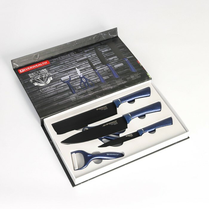 Купить Набор ножей Blades, 5 предметов: 3 ножа, овощечистка, ножницы в комплекте, цвет синий