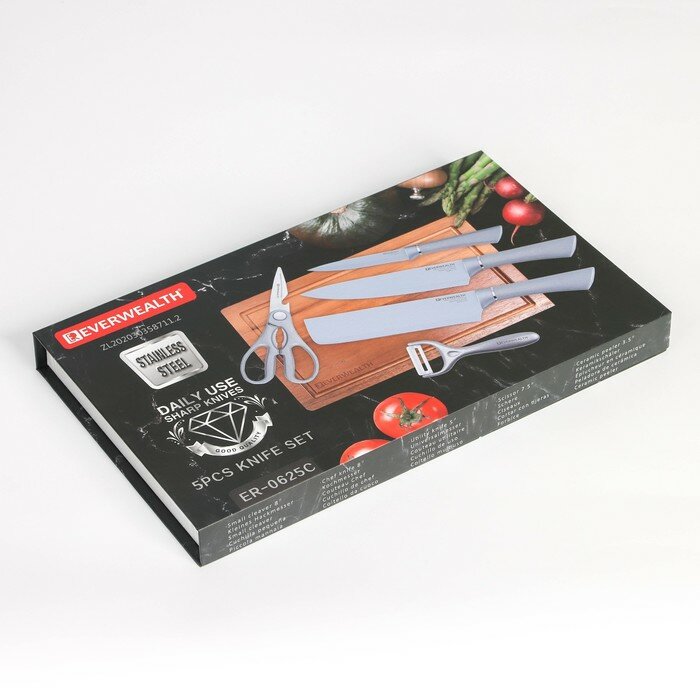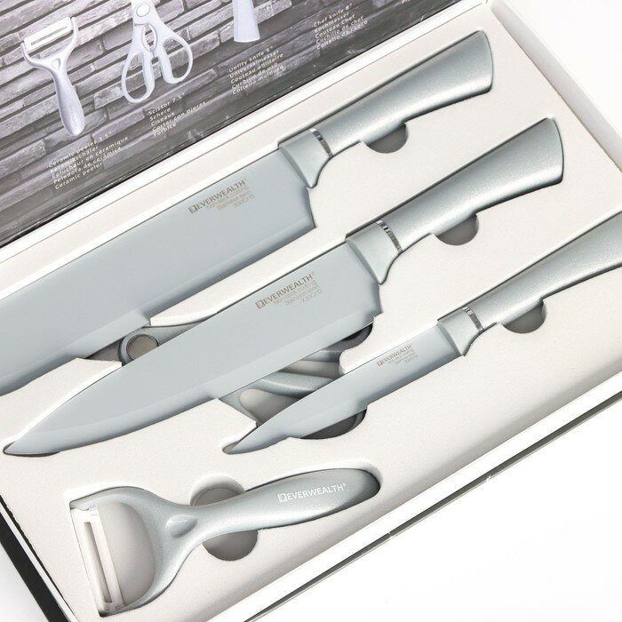 Набор ножей Blades, 5 предметов: 3 ножа, овощечистка, ножницы в комплекте, цвет белый интересное: