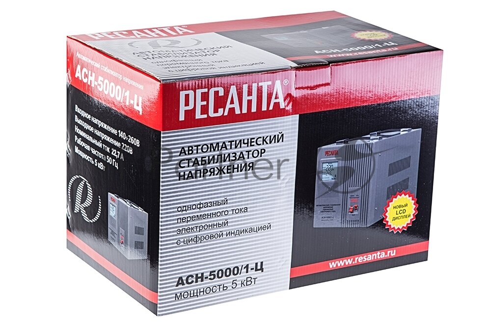 Стабилизатор напряжения АСН-5000/1-Ц 1ф 5кВт IP20 релейный Ресанта 63/6/6 интересное: