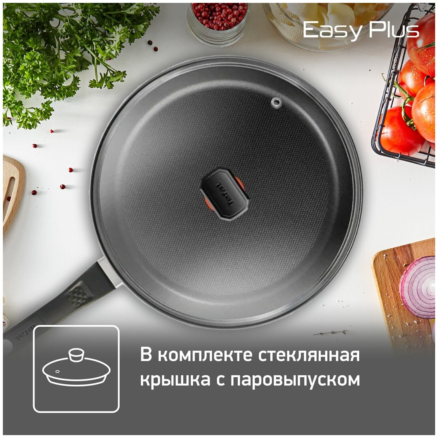Сковорода Tefal Easy Plus 04206924, 24см, с крышкой, черный [9100045478]