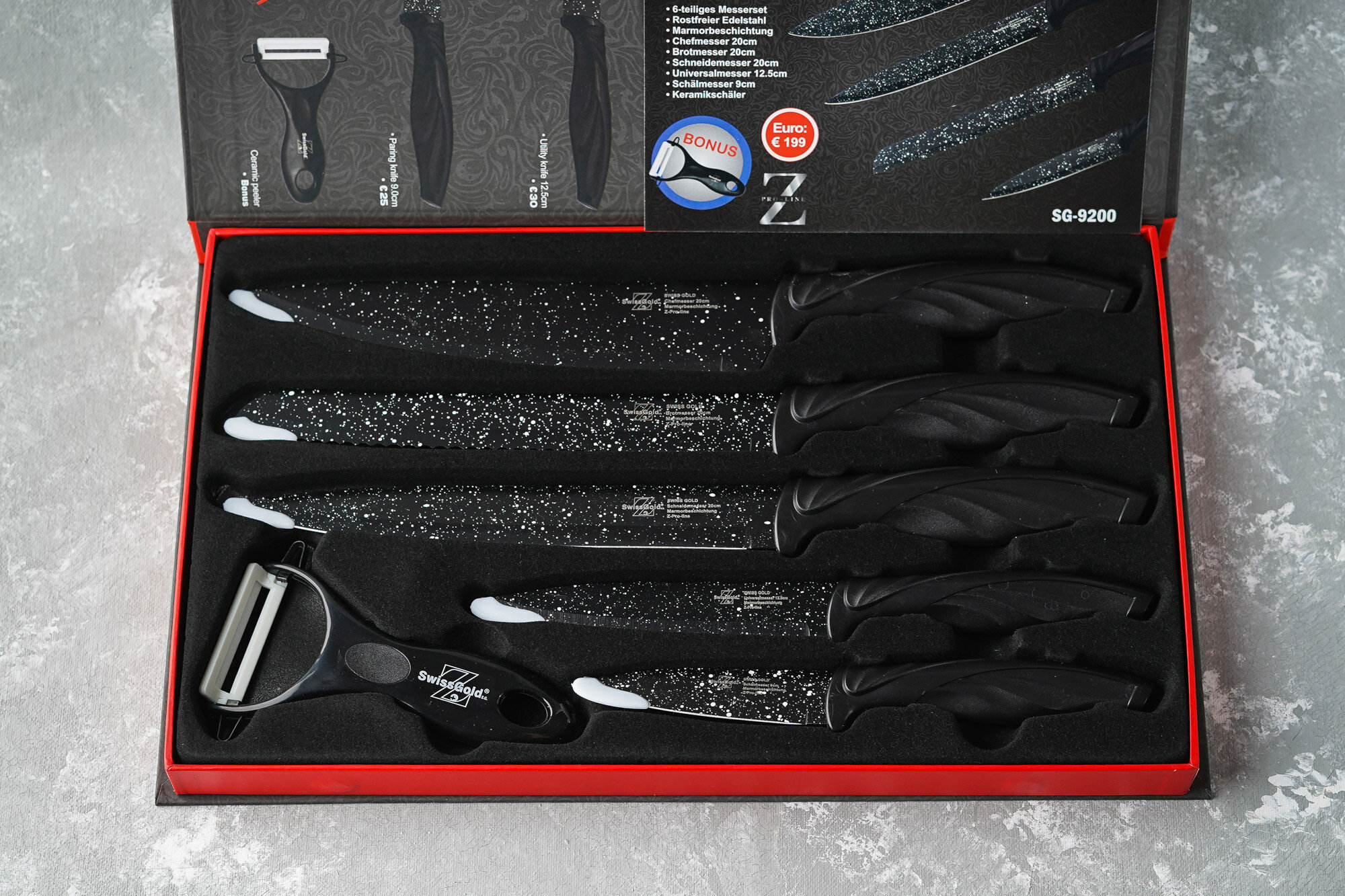 | Плюсы: | Красивый набор , острые ножи ,выглядят дорого |