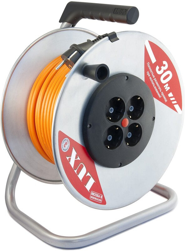 Удлинитель силовой LUX К4-Е-30 ПВС 3х1,5 30м 16А на катушке интересное: