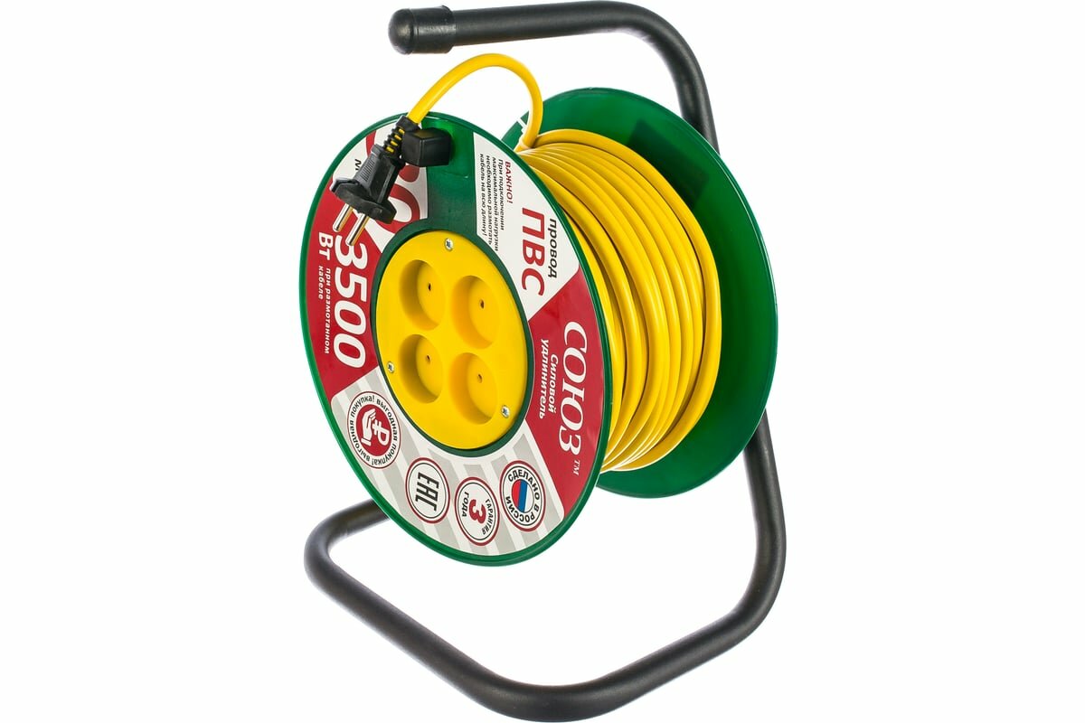 Удлинитель силовой "СОЮЗ", на катушке, 4 гнезда, 3500 Вт, 30 м