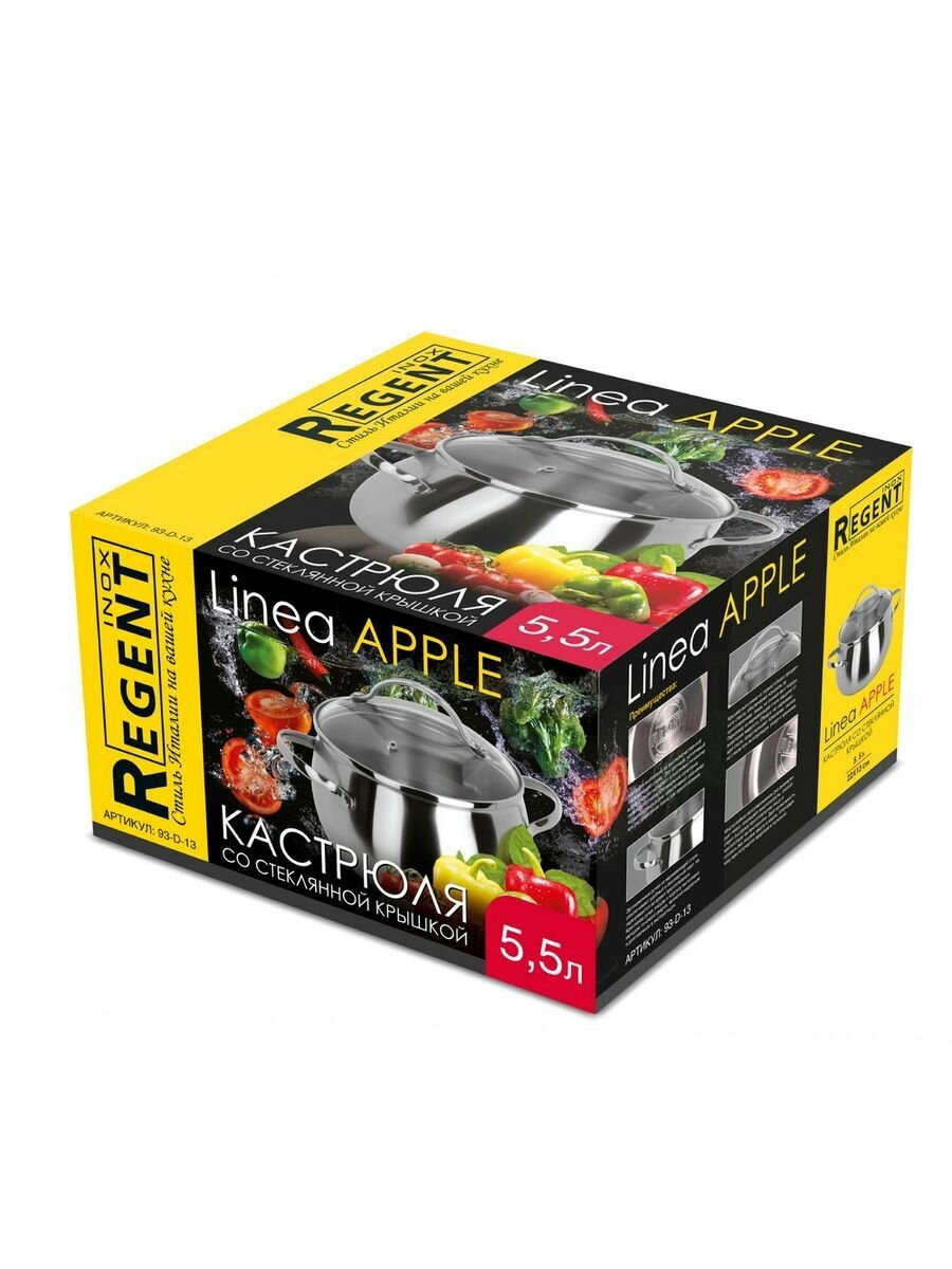 Кастрюля 5,5л матовая полированная стеклянная крышка 22х13см Apple 93-D-13 REGENT