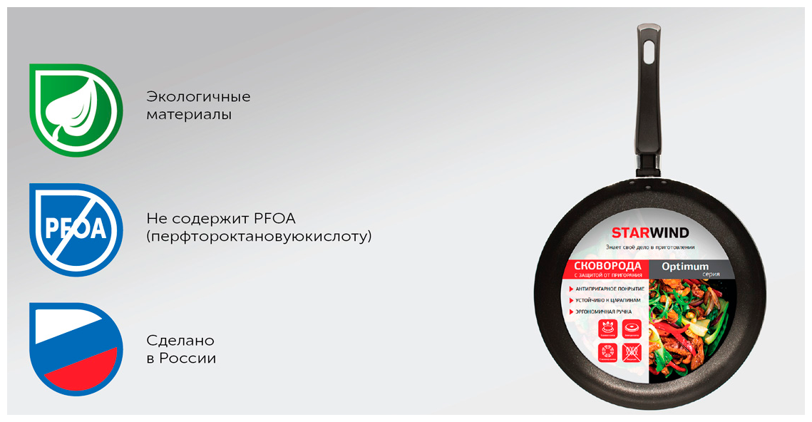 СохранитьСковорода StarWind Optimum SW-OP1026, 26см, без крышки, черный интересное:
