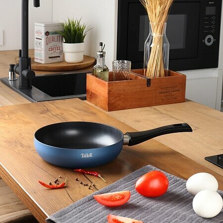 | Отзыв: | Предпочитаю эту фирму, уже третья сковорода от Taller. Подходит для индукционной плиты. Диаметр 26 см универсален, готовлю в ней завтрак на двоих, пасту, использую для жарки блинов |