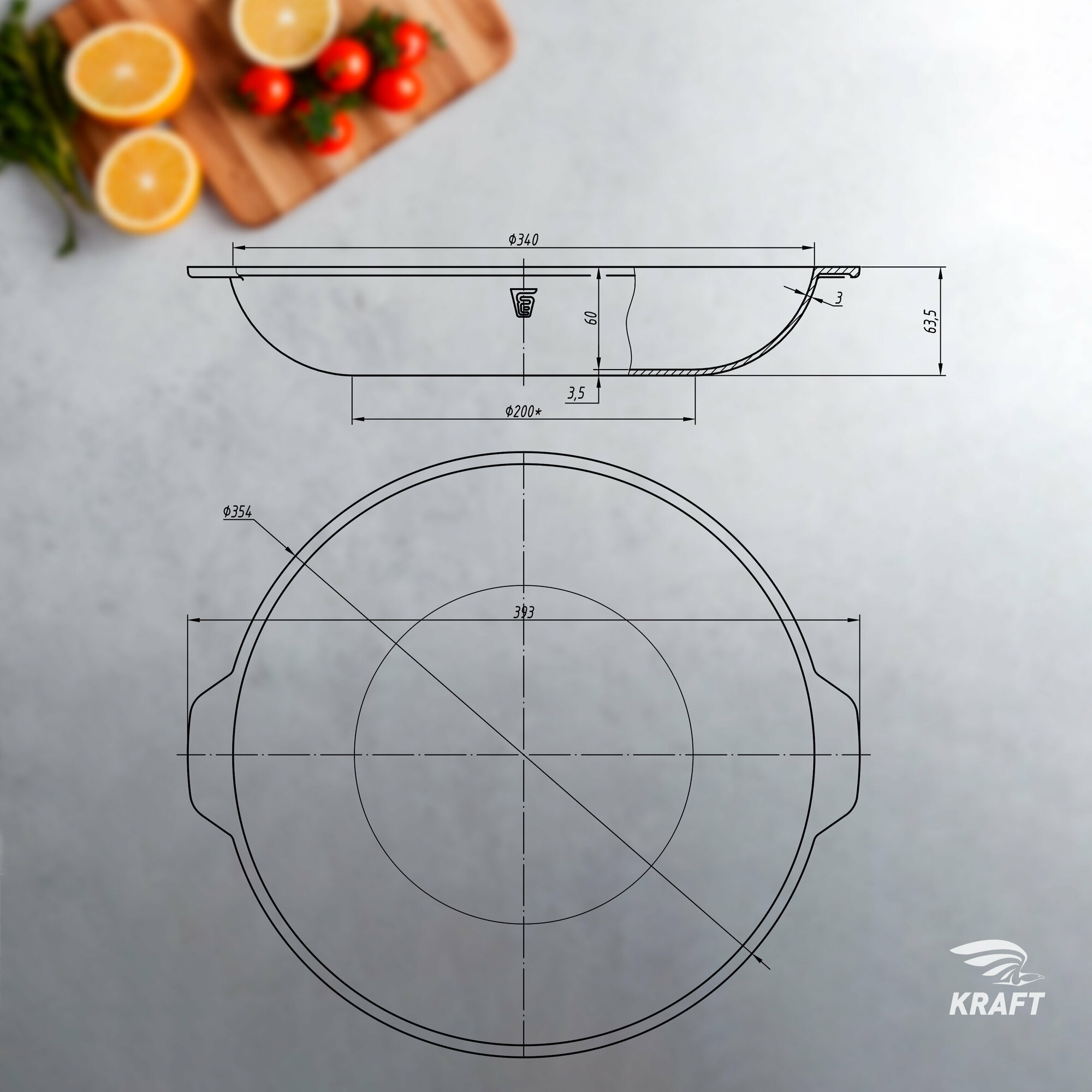 | Комплектация | Сковорода чугунная 34 см с литыми ручками "ушками" - 1 шт. |