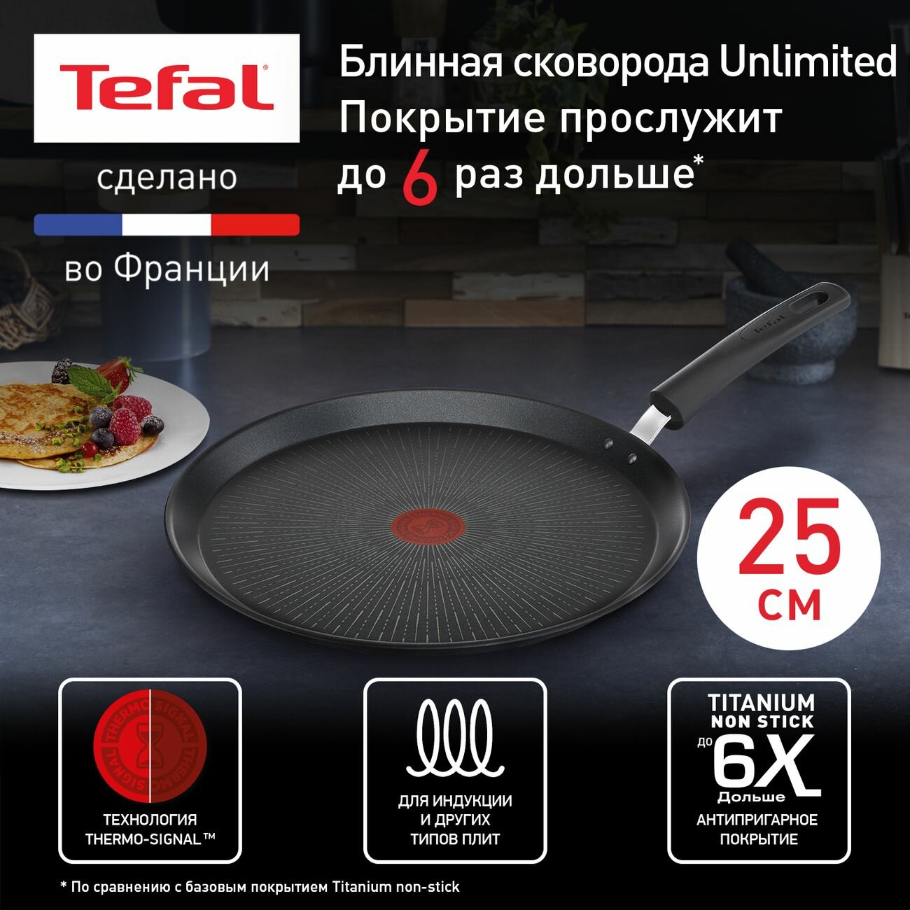 Сковорода блинная Tefal Unlimited 25 см (G2553872) интересное: