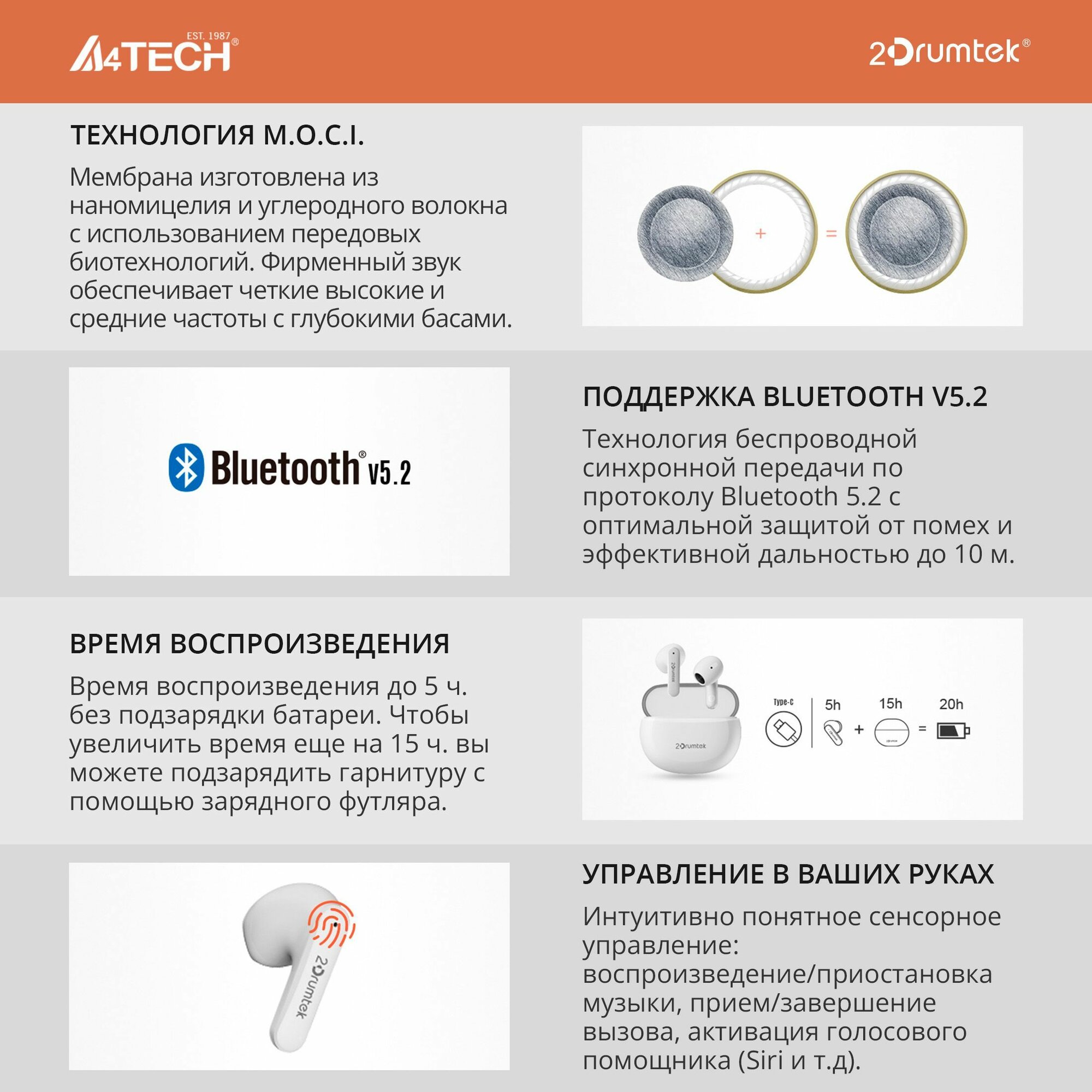 Ниже Вы можете прочитать отзывы на Гарнитура вкладыши A4Tech 2Drumtek B20 TWS белый беспроводные bluetooth (B20 GRAYISH WHITE), ознакомится с подробными характеристиками, посмотреть интересные обзоры и фотографии на Гарнитура вкладыши A4Tech 2Drumtek B20 TWS белый беспроводные bluetooth (B20 GRAYISH WHITE).