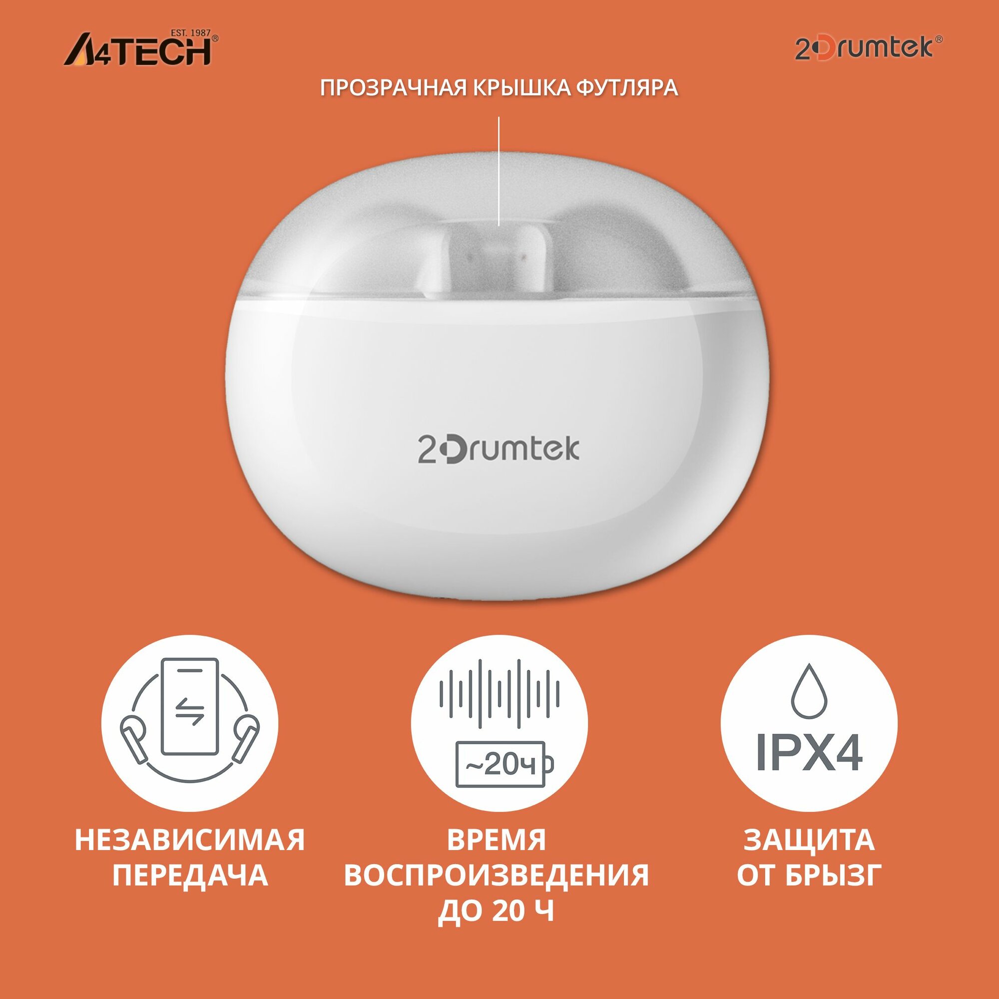 Беспроводная гарнитура A4TECH 2Drumtek B20 TWS bluetooth белый