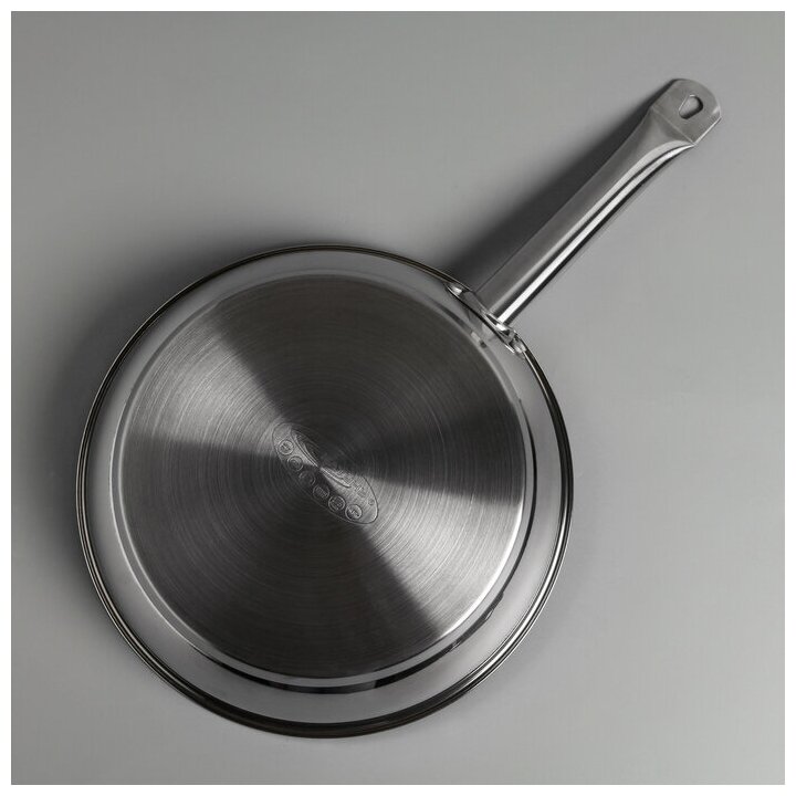 Сковорода «Общепит», d=28 см, толщина корпуса 0,6 мм, дно 3,5 мм, с теплораспределительным слоем, антипригарное покрытие, индукция, цвет металлик