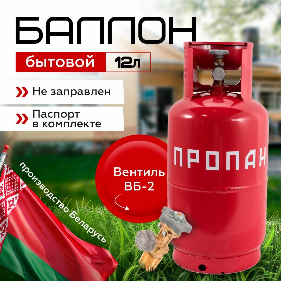 Баллон пропановый газовый бытовой 18л с вентилем ВБ-2 НЗГА Белоруссия (баллон пустой, без газа)