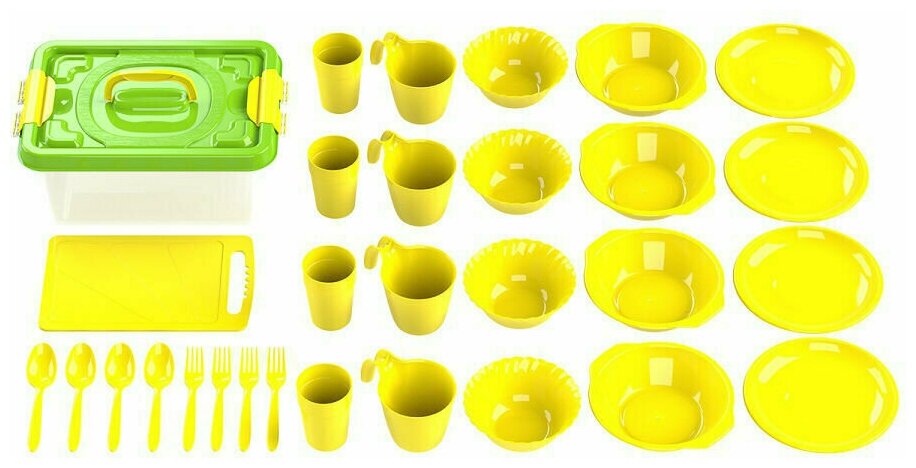Комплект для пикника, 19 предметов на 4 персоны (Желтый)