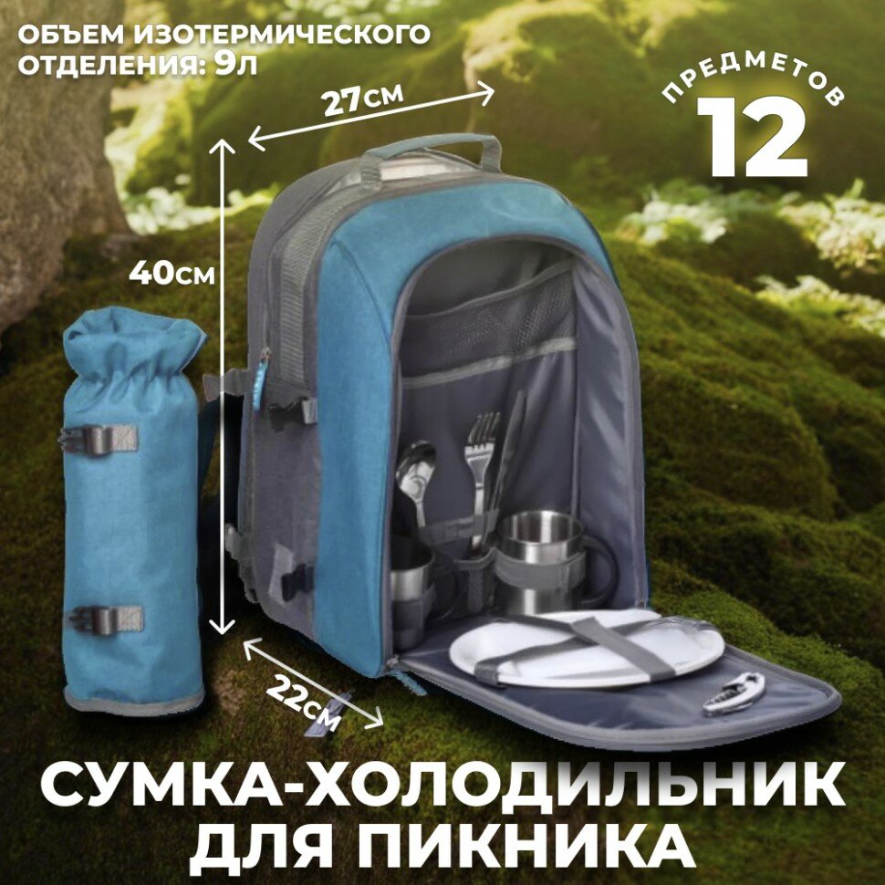 Stride Сумка-холодильник для пикника "Lilla Fridag" с отделением под бутылку и набором посуды на 2 персоны интересное: