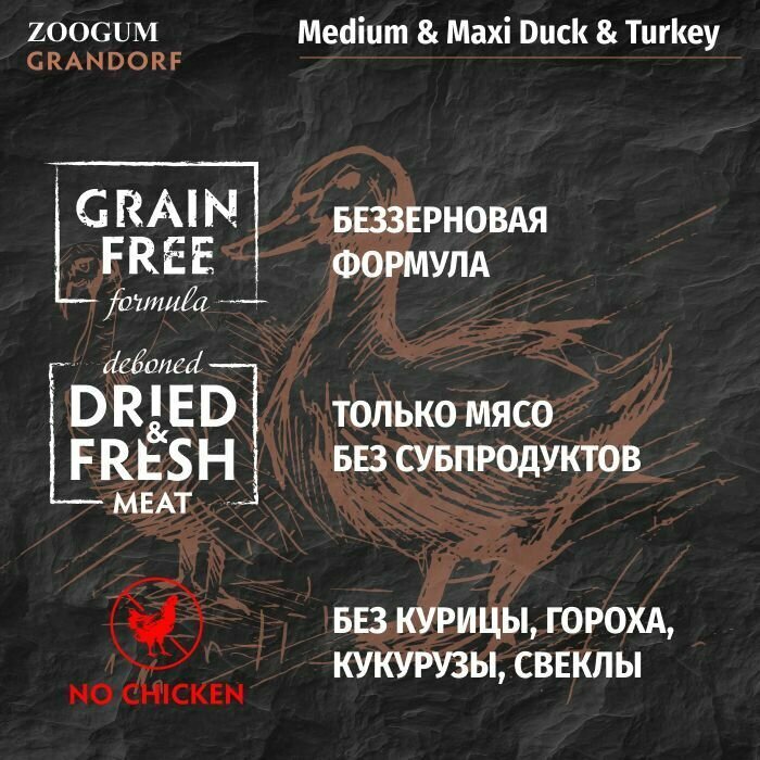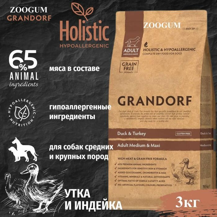 GRANDORF DOG Duck & Turkey MED & MAXI для собак средних и крупных пород, утка с индейкой 3кг.