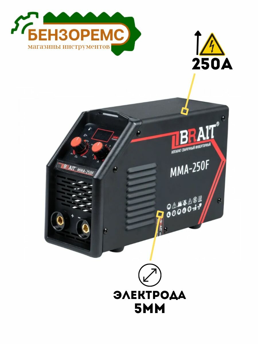 Инвертор сварочный BRAIT ММА-250F (20-250А;d.1,6-5 мм., защита от перегрева, антизалипание, горячий старт)