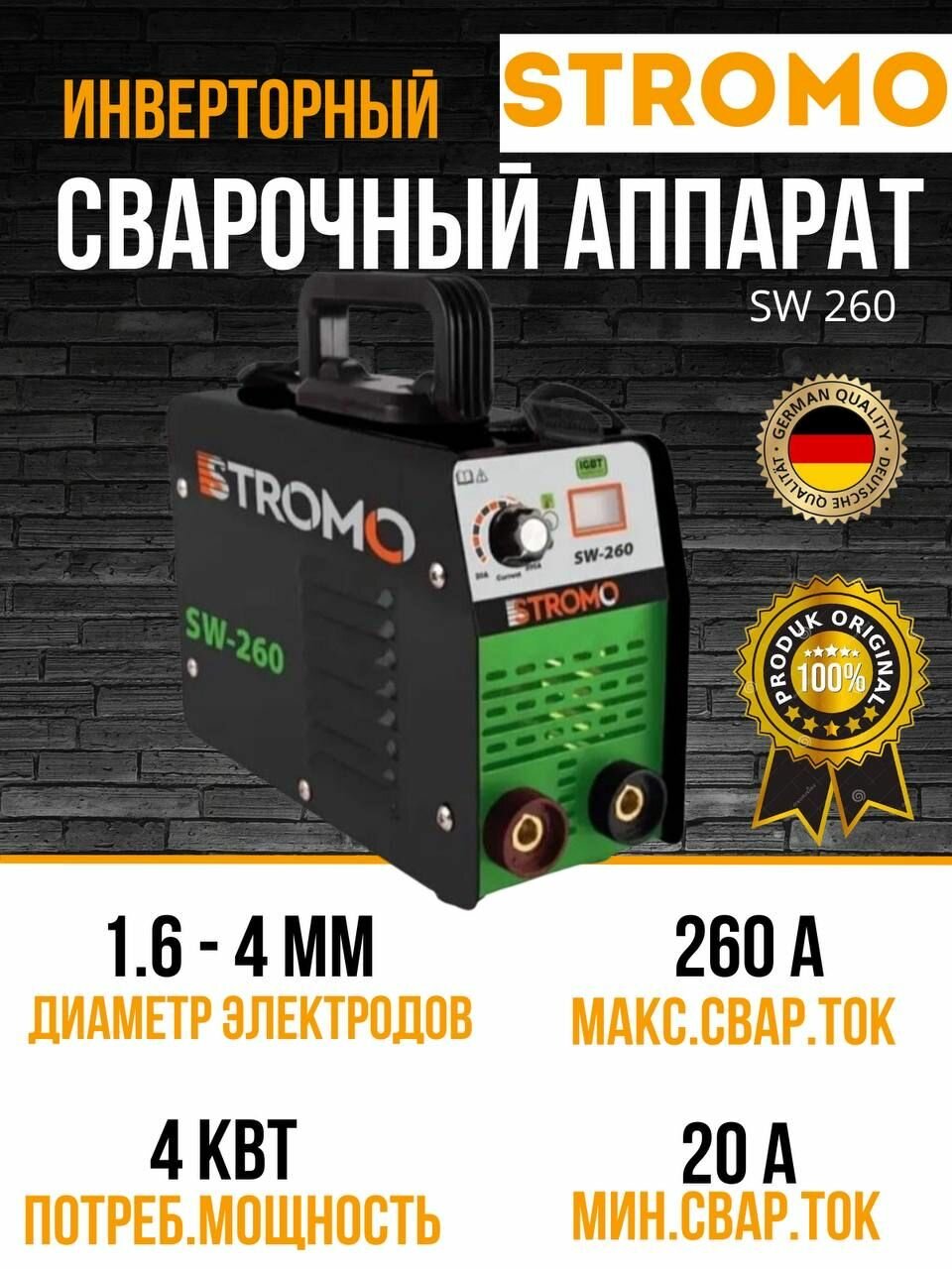 Сварочный аппарат инверторный STROMO SW 260, электрод 1,6-4мм, ММА, 20-260А, 4кВ