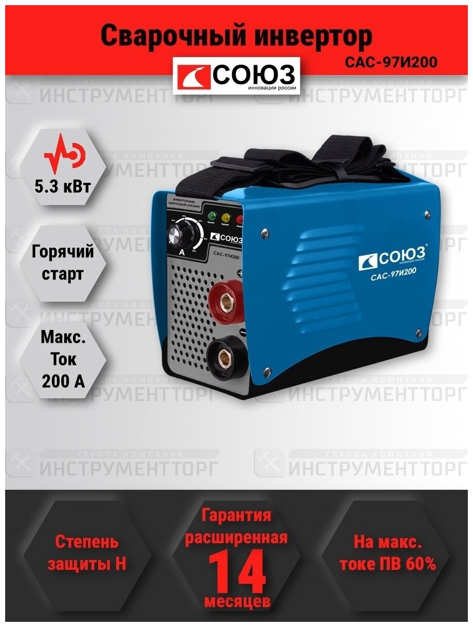 САС-97И200 Сварочный инвертор СОЮЗ, 200А, ПВ 60%, 170-250В, HotStart/AntiStick/ArcForce СОЮЗ