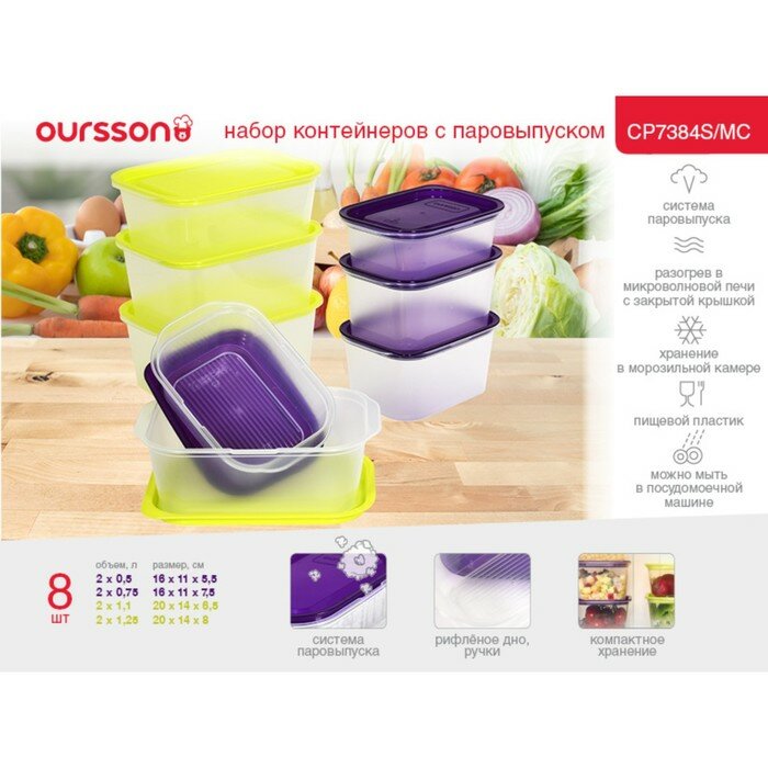 Набор пластиковых контейнеров Oursson CP7384S/MC (Многоцветный) интересное: