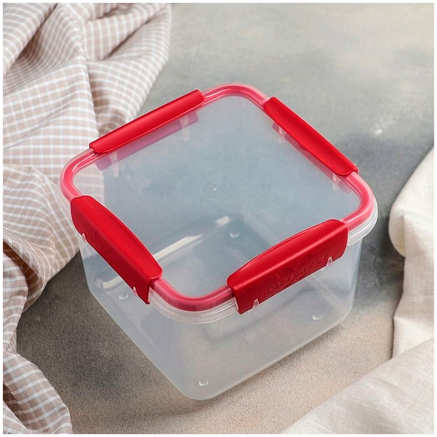 Контейнер с крышкой пищевой 1,7л герметичный BUTTERFLY ланч бокс 11х15,6х15,6см прозрачный, 7850699, 437850665