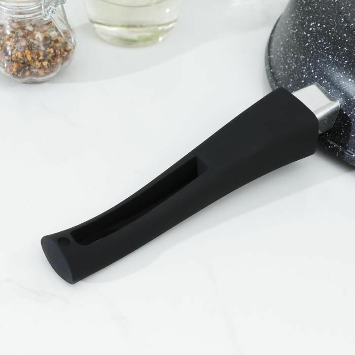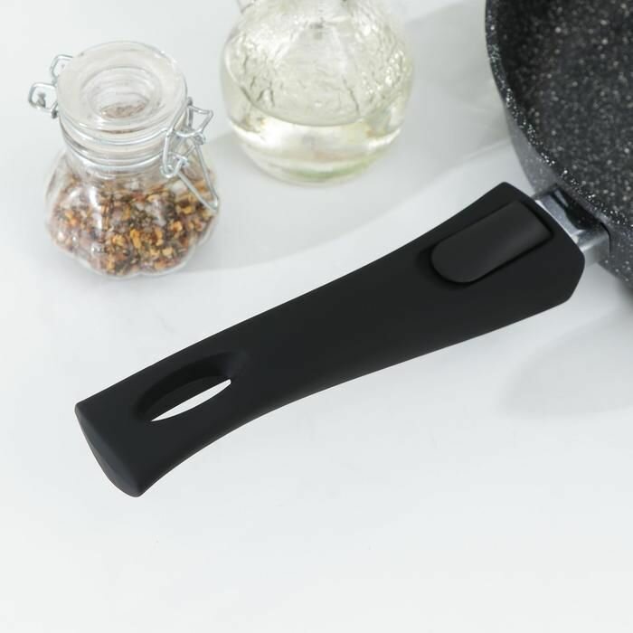 Сковорода Доляна «Элит», d=24 см, пластиковая ручка, стеклянная крышка, антипригарное покрытие, цвет чёрный, материал литой алюминий