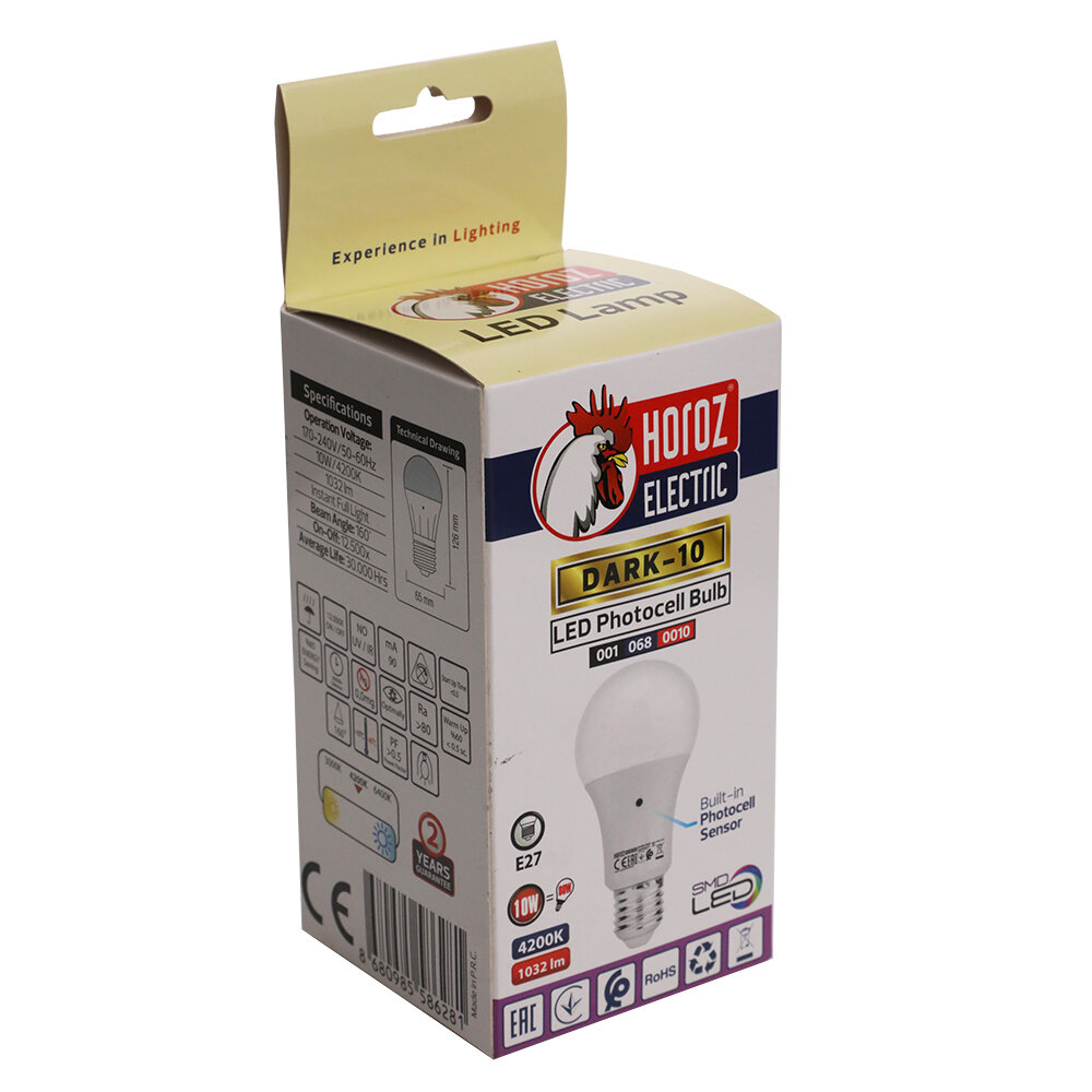 Светодиодная лампа с датчиком света HOROZ ELECTRIC 10 Вт Е27дневной свет интересное:
