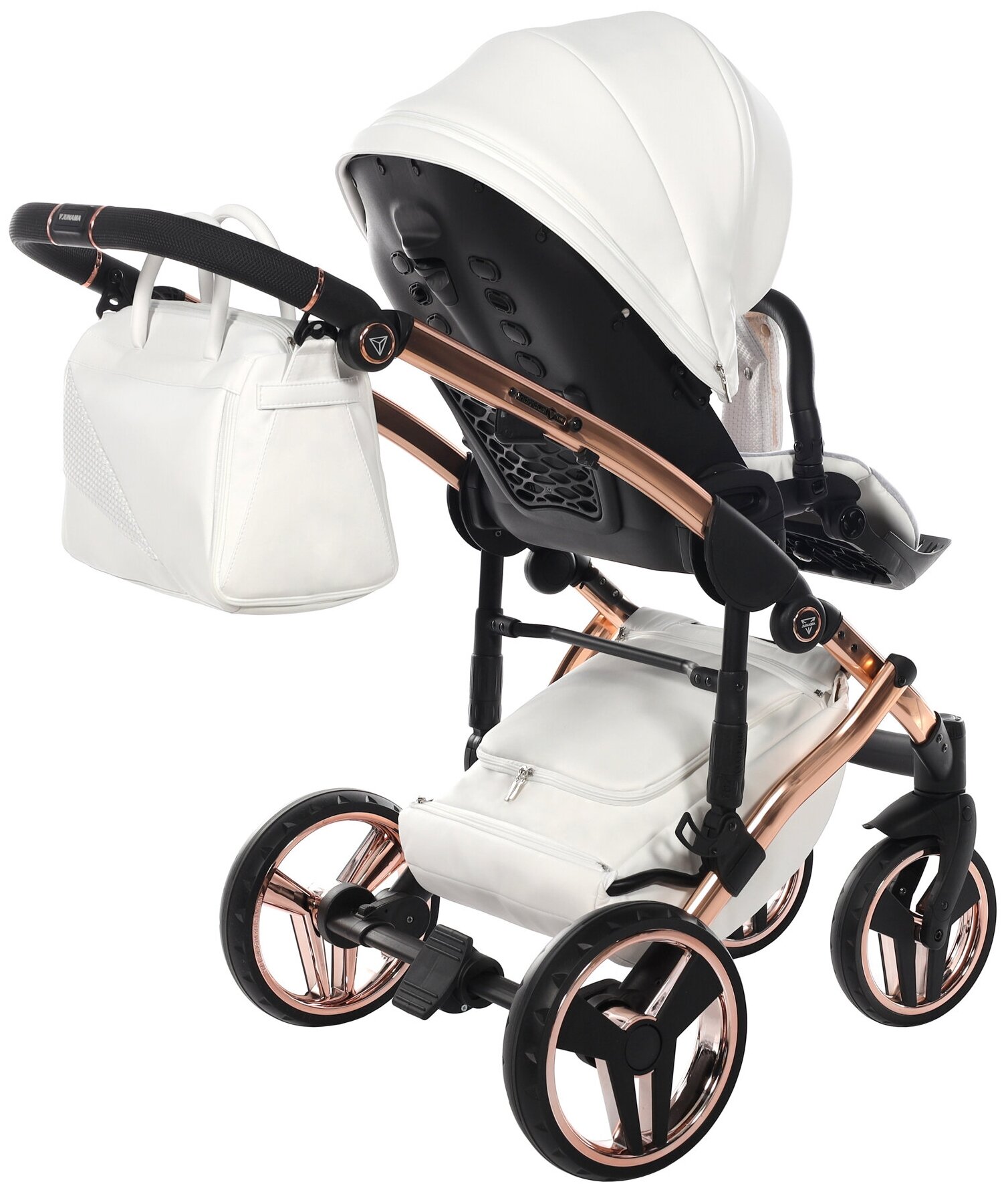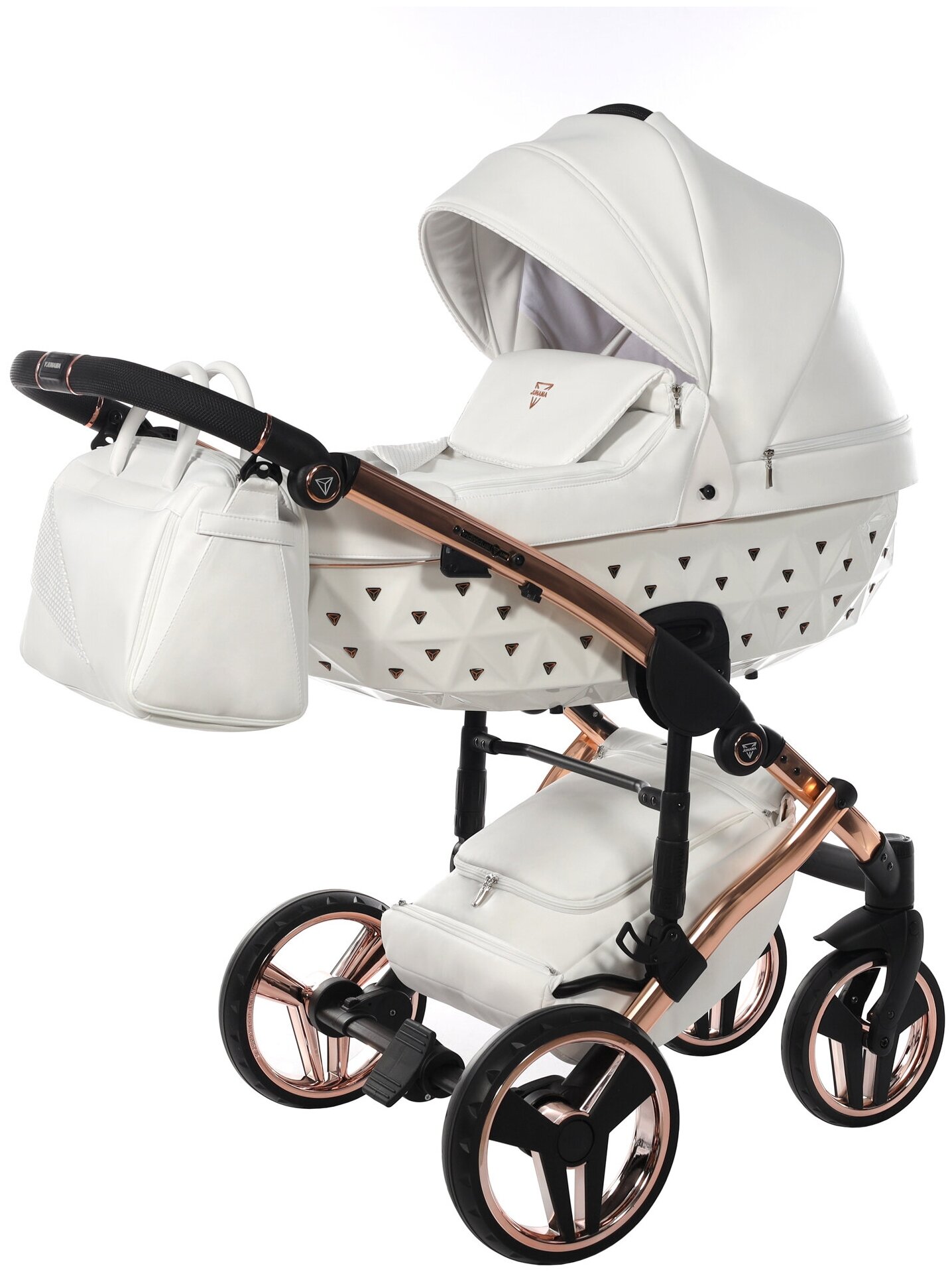 Купить Универсальная коляска 2 в 1 JUNAMA DIAMOND S-line Exclusive JDE-04 VERSION 2 (белая кожа/белый короб/рама медь)