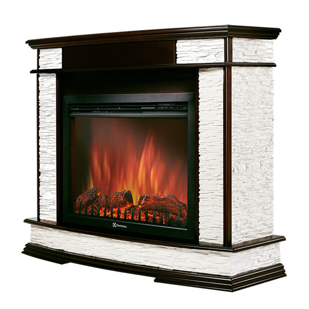 Купить Электрокамин (очаг+портал) Electrolux Scala 30 камень сланец скалистый белый, шпон тёмный дуб EFP/P-3320RLS