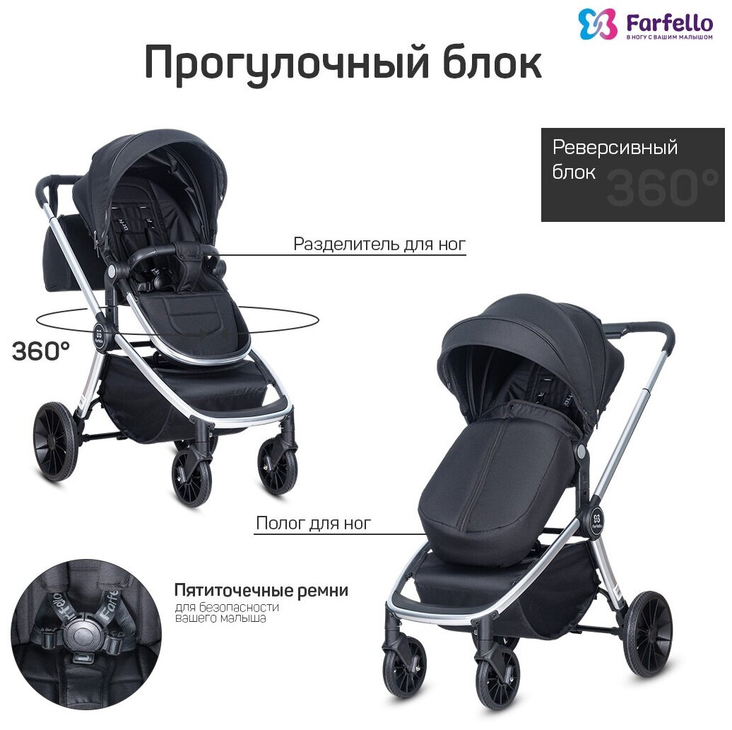 СохранитьКоляска модульная 3 в 1 Farfello Baby Shell / BBS / цвет чёрный / серебряная рама / BBS-55 интересное: