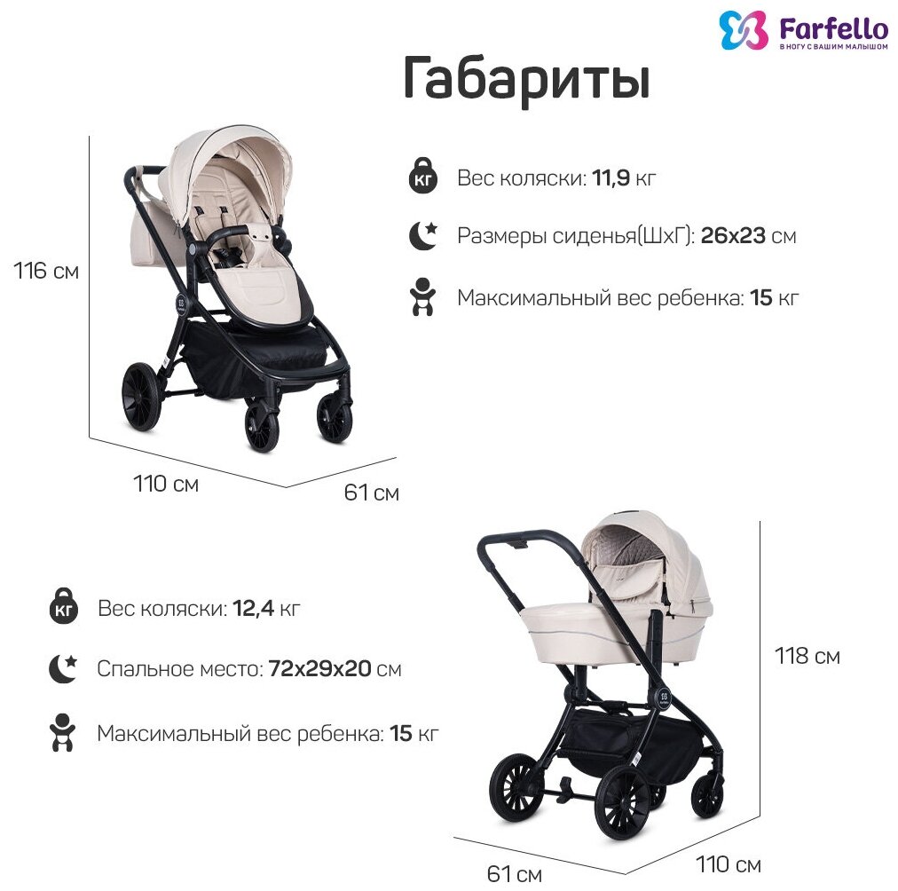 СохранитьКоляска модульная 3 в 1 Farfello Baby Shell / BBS / цвет бежевый / черная рама / BBS-66 интересное: