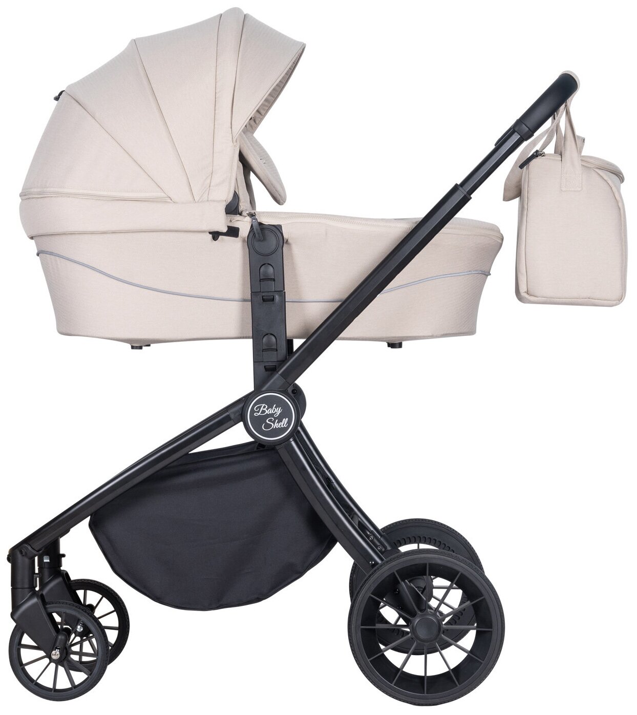 Коляска модульная 3 в 1 Farfello Baby Shell / BBS / цвет бежевый / черная рама / BBS-68