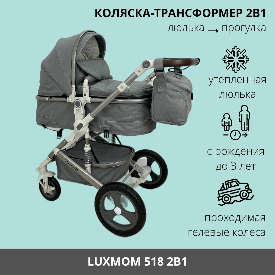 Коляска - трансформер 2в1 Luxmom 518 (серый), для новорожденных