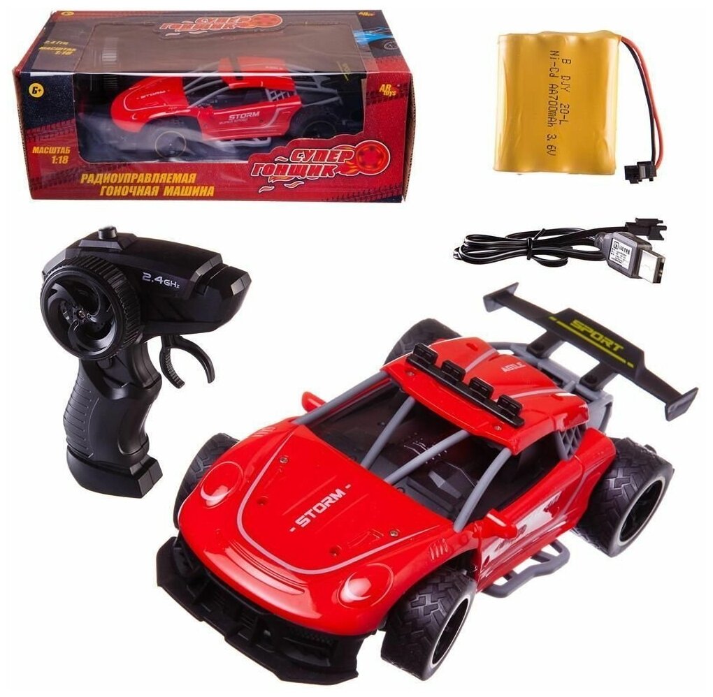 Машинка на радиоуправлении Abtoys гоночная 2,4Ггц, резиновые колеса, аккумуляторный блок, красная-4 1:18 интересное: