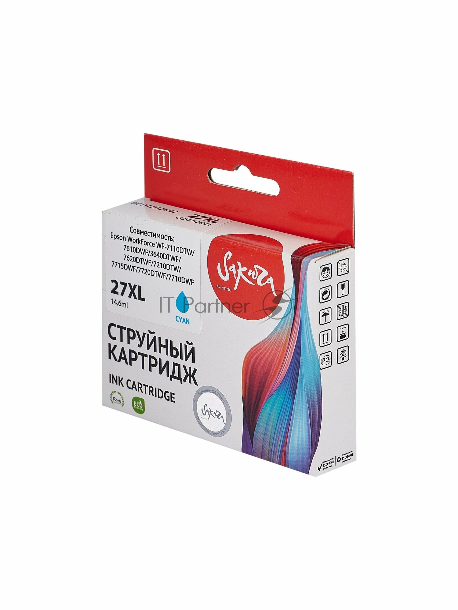 Картридж C13T27124022 (27XL Cyan) для Epson, струйный, голубой, 14,6 мл., 1100 страниц, Sakura