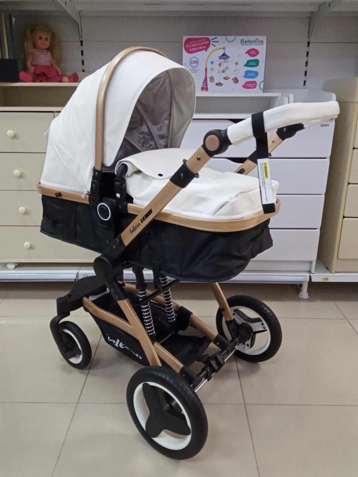 Детская коляска-трансформер 3 в 1 Belecoo X6, белый с дополнительным матрасиком