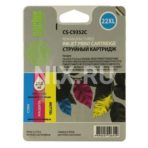 Картридж струйный Cactus CS-C9352C №22XL многоцветный (18мл) для HP DJ 3920/3940/D1360/D1460/D1470/D1560/D2330/D2360