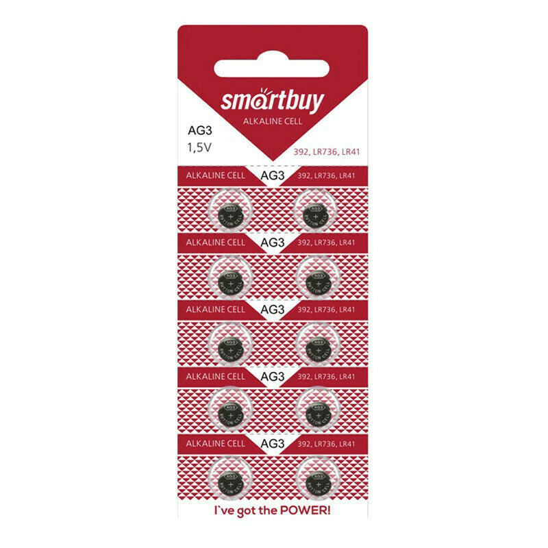 Батарейка AG 3 (LR41, 384, 392) 1.5V SmartBuy blister 10 шт.