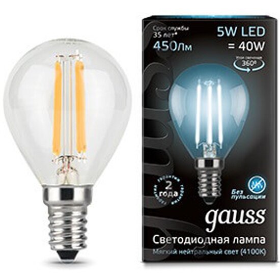 Светодиодная лампа GAUSS LED Filament Globe E14 5W 4100K (упаковка 10 шт) интересное: