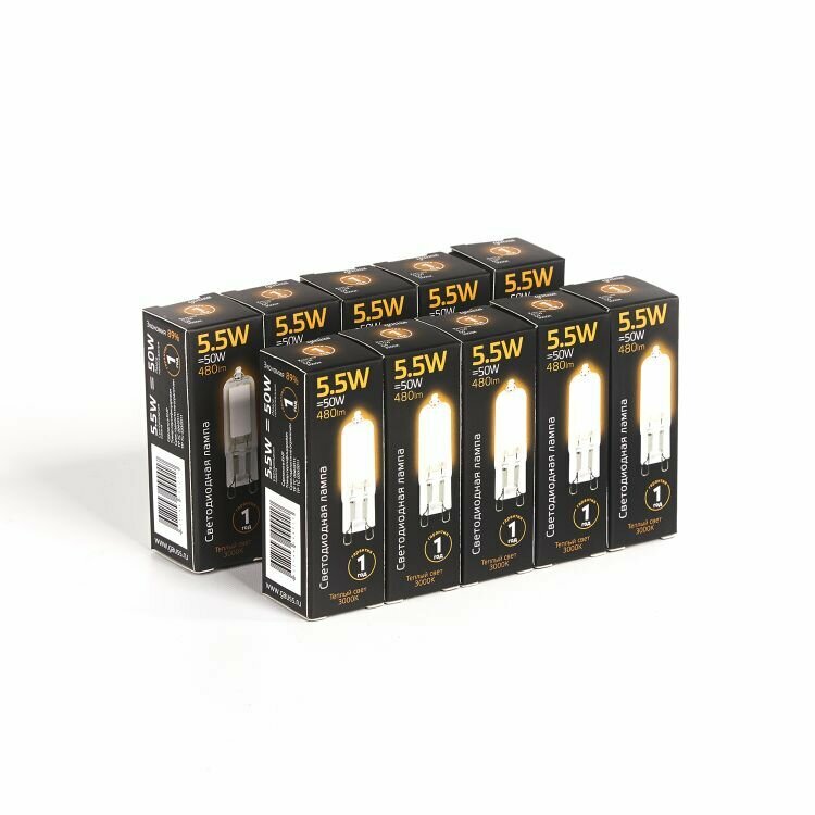 107809105 Лампа Gauss LED G9 AC220-240V 5.5W 480lm 3000K Glass 1/10/200