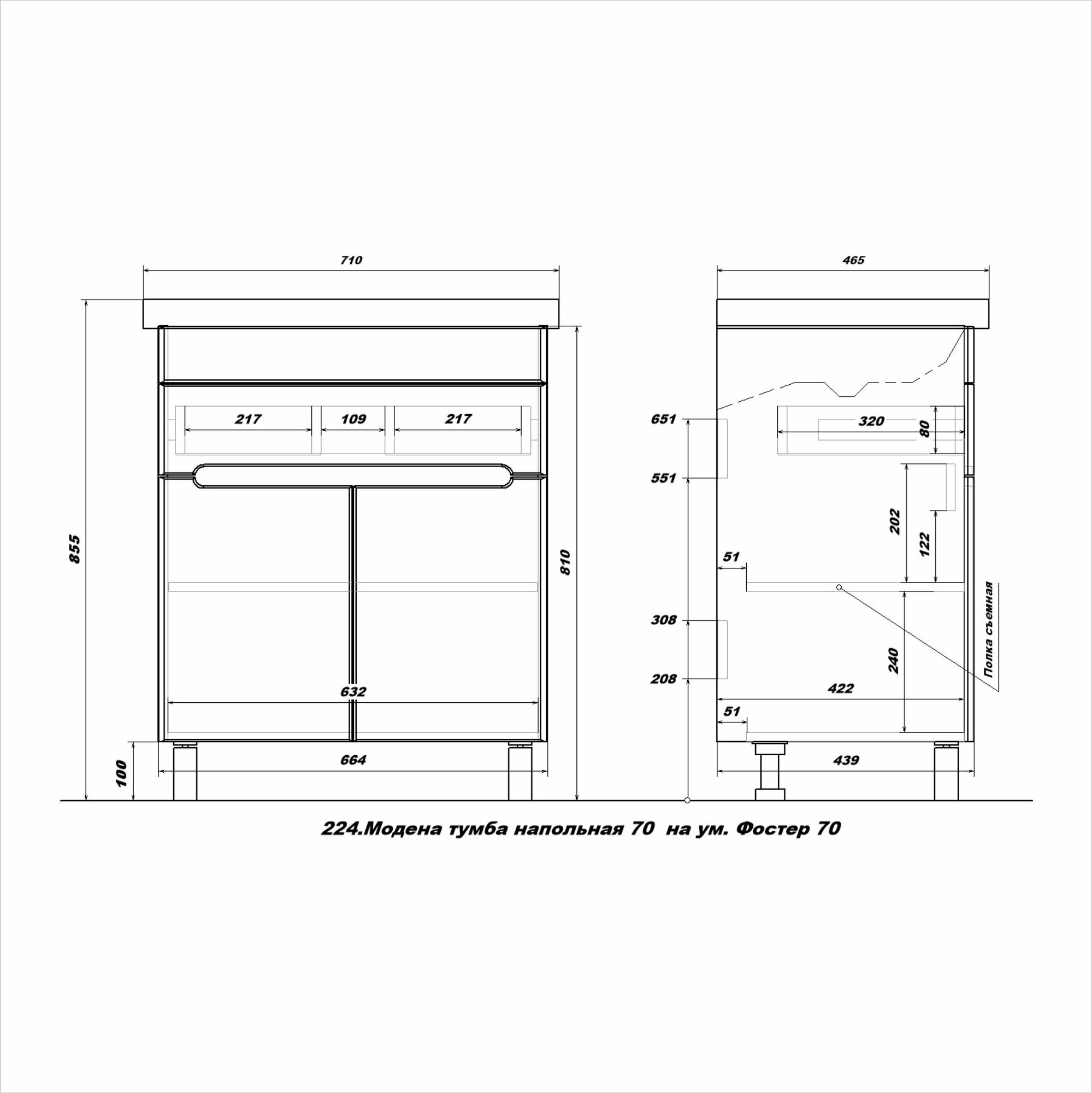Sanstar Комплект Тумба Модена 70 напольная, мебельный умывальник Фостер 700 224.1-1.4.1.К