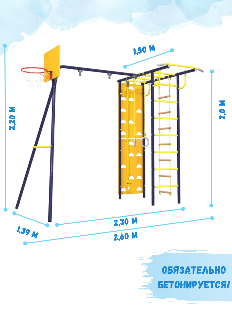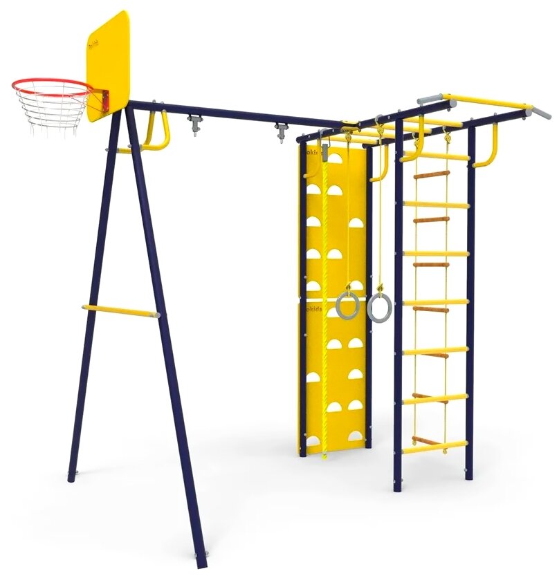 | В комплекте | баскетбольное кольцо, веревочная лестница, гимнастические кольца, канат, рукоход, скалолазная стенка, турник |