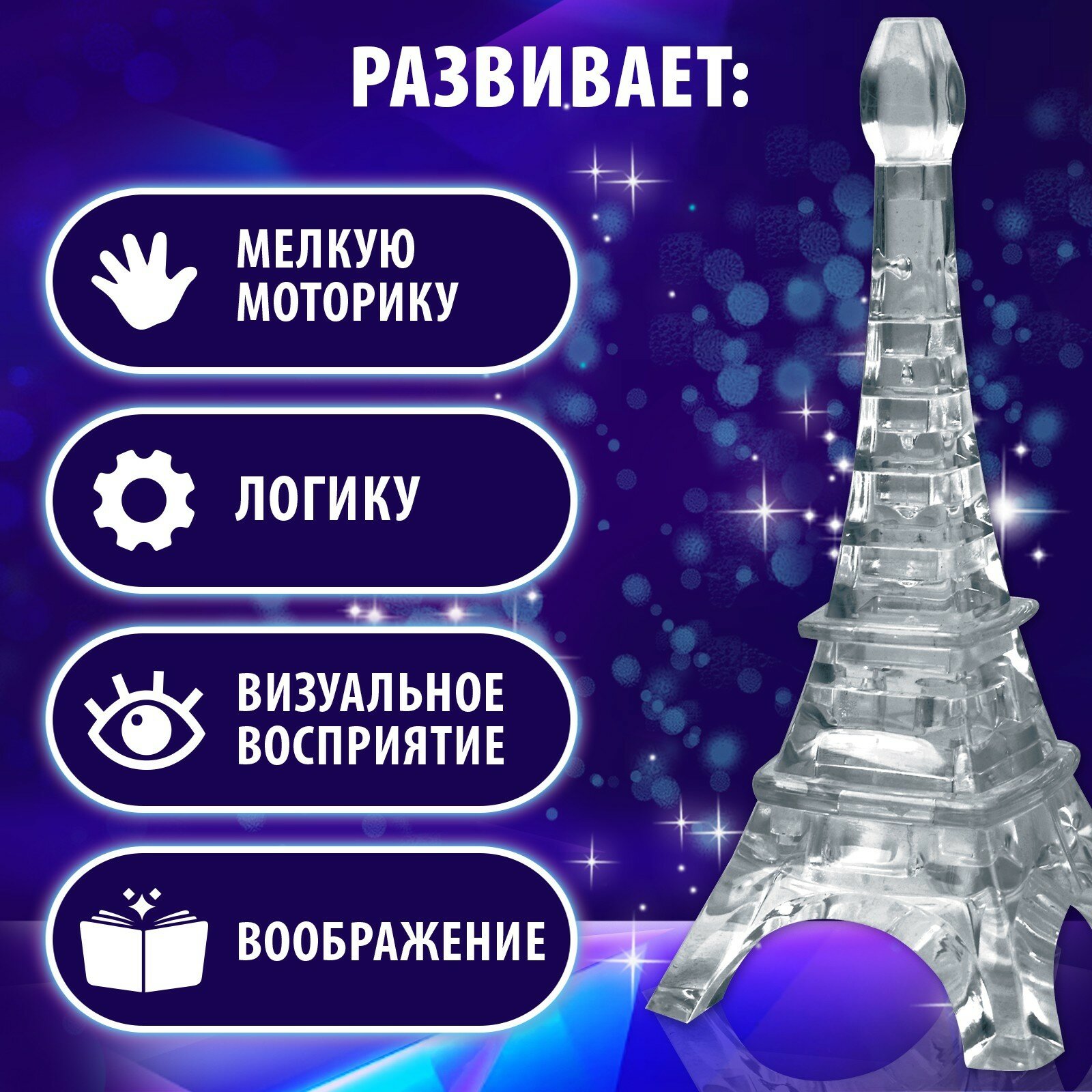 ZABIAKA Пазл 3D кристаллический «Эйфелева башня», 10 деталей, цвета микс. "Микс" - один из товаров представленных на фото, без возможности выбора.