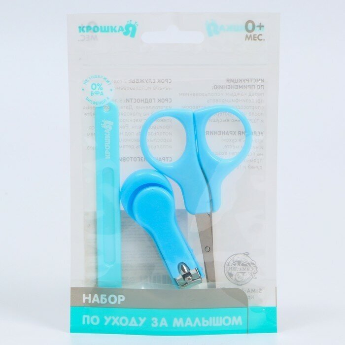 Купить Детский маникюрный набор, 3 предмета: ножницы, пилка, книпсер, от 0 мес., цвет голубой