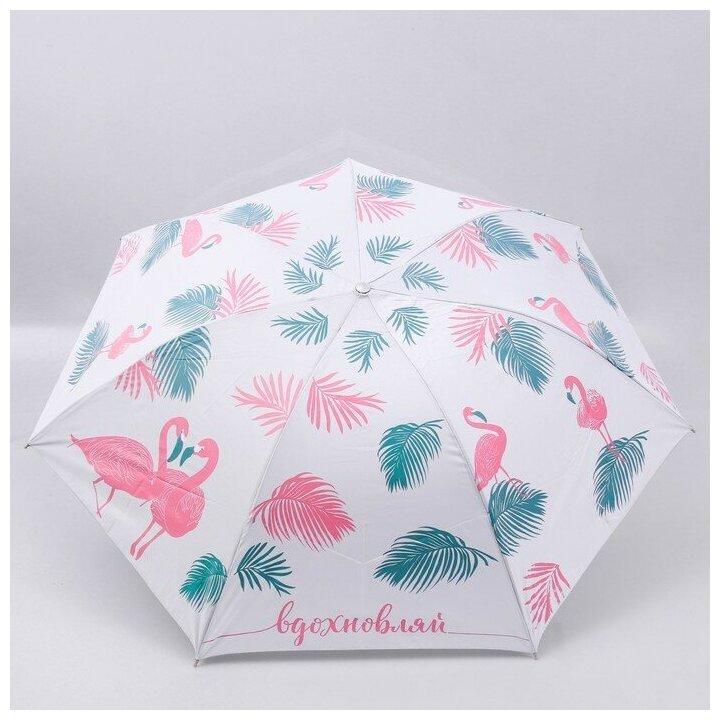 Купить Зонт механический "Вдохновляй", 8 спиц, d = 95 см, цвет белый, принт перья