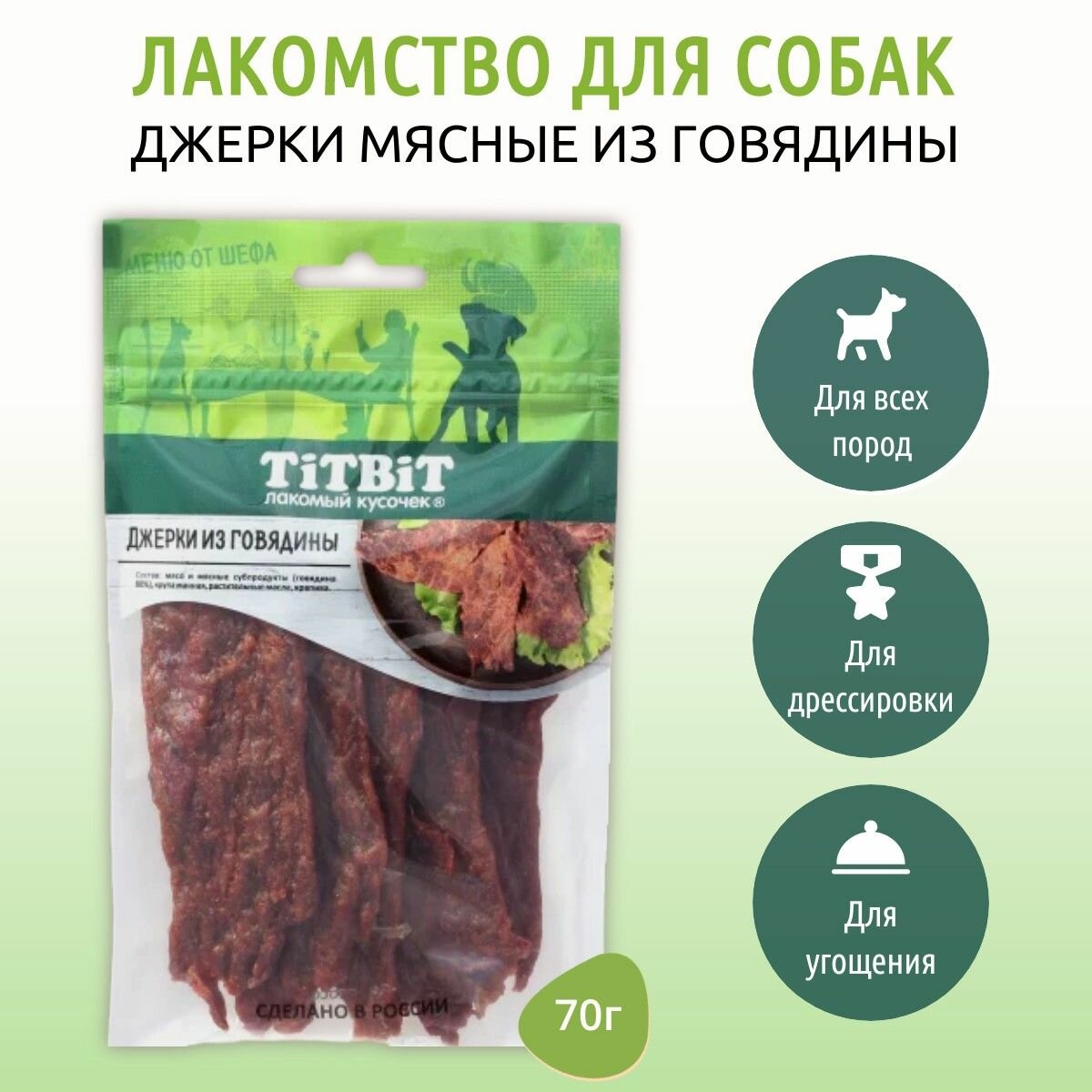 Купить Лакомство для собак TiTBiT Меню от Шефа Джерки мясные из говядины 70 г