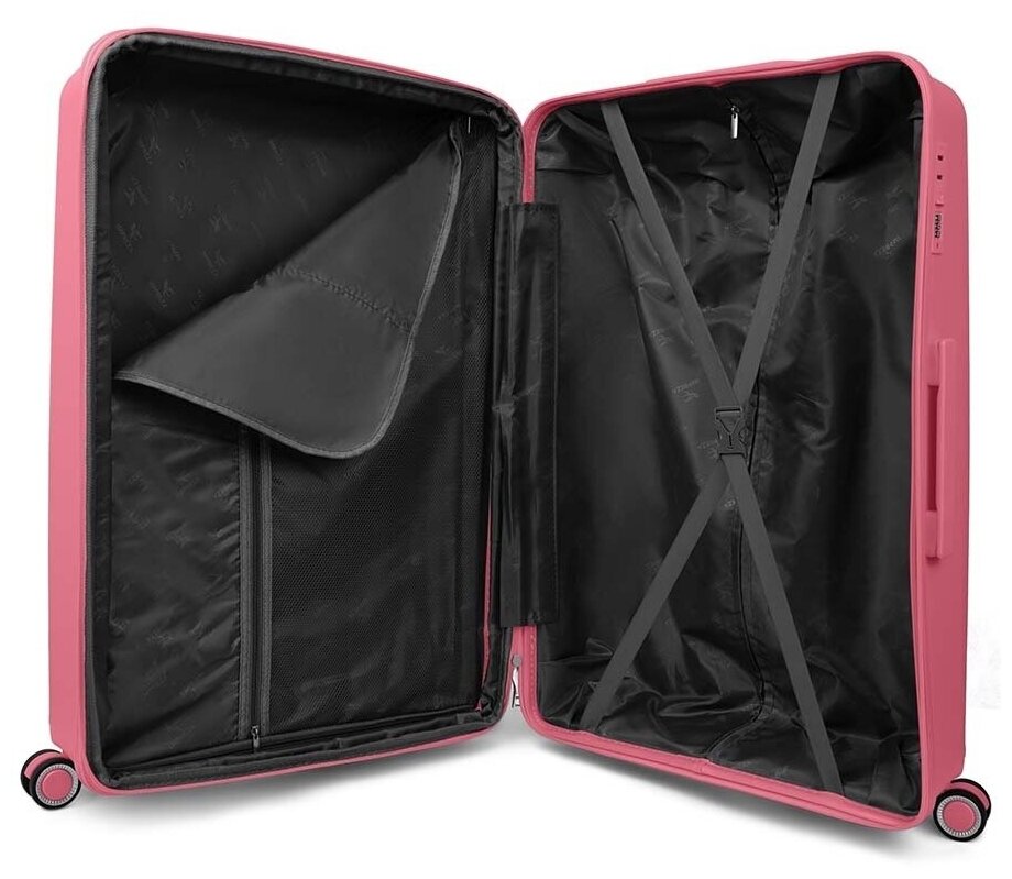 Чемодан на колесах дорожный огромный семейный багаж для путешествий l Тевин размер Л 73 см 105 л легкий 3.8 кг прочный полипропилен Розовый луч